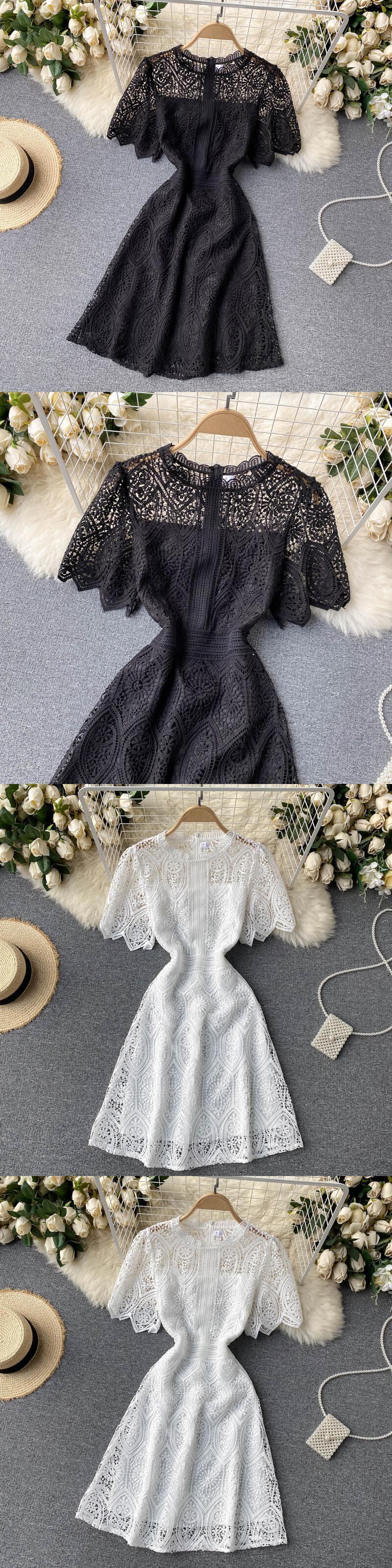 女性レトロプリントドレスレース半袖Aラインドレスサマーストリートウェアミディドレス ショート ハーフスリーブ 夏物