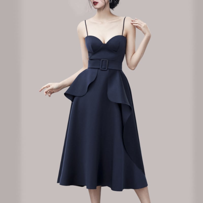 2021年夏のドレスノースリーブスパゲッティストラップフリルウエストセクシーなヴィンテージパーティーVestidosドレス ラッフル サマー 夏物 ビンテージ