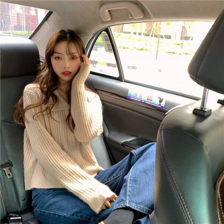 タートルネックツイストニットセーター女性の2021年春秋新しいレトロショートルーズトップニットカーディガンシングルブレスト スプリング 春物 オータム 秋物