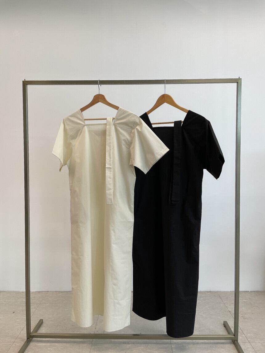 シックなスクエアカラーミドル丈の女性のドレス半袖ルーズレースアップドレス2021夏の固体Vestidos ショート ハーフスリーブ サマー 夏物 ソリッドカラー スクウェア