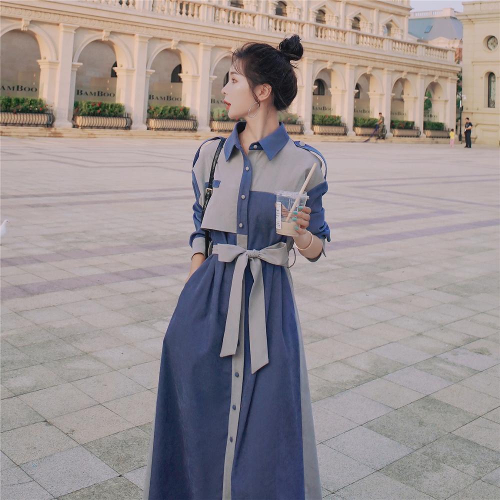 ウィンターベルベットレディースドレスラペル気質スリムミドル丈スプライシングカラードレスペンシルヴェスティドス 冬物
