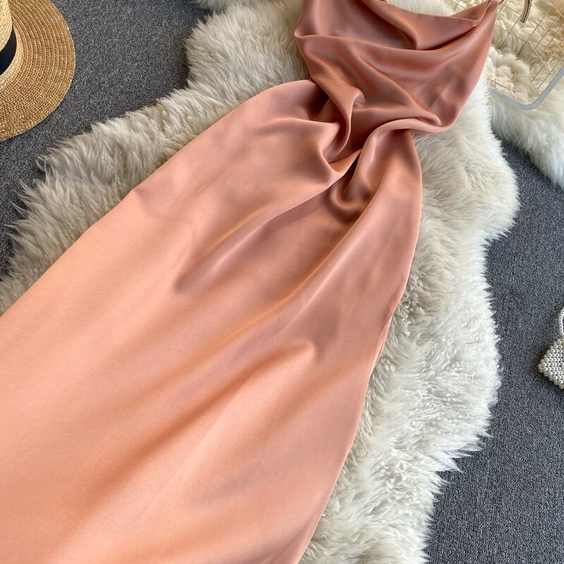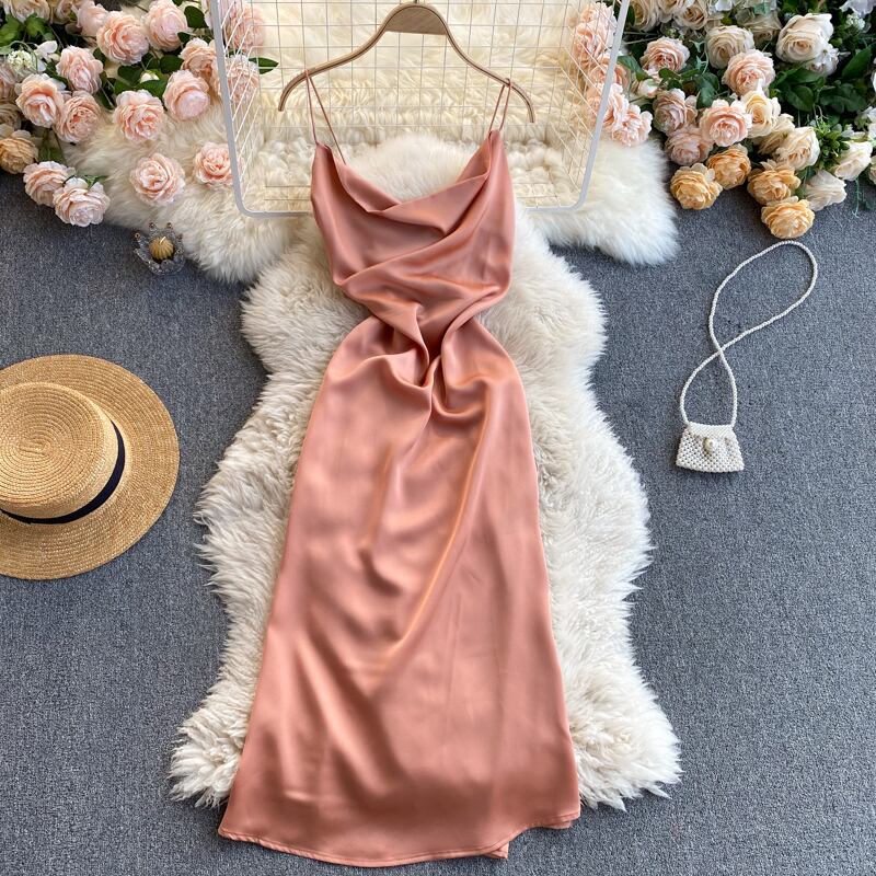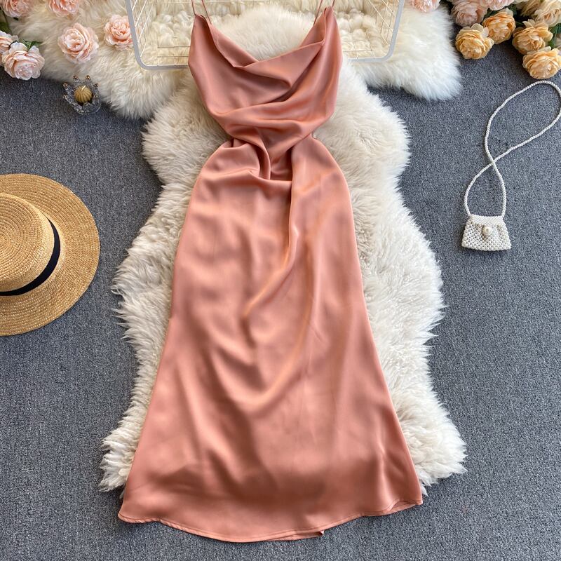 自由奔放に生きるスパゲッティストラップストラップレスノースリーブピンクミディサマードレスクロス包帯バックレスソリッドセクシークラブドレスAラインVestido 夏物 ソリッドカラー