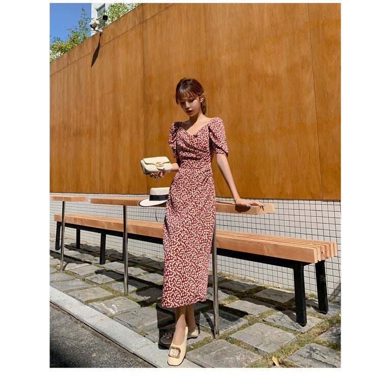 ヴィンテージフローラルプリントロングドレスセクシーなVネックレトロパフスリーブ シフォンレディースドレスサマーフェアリードレスローブエテンレディースドレスサマーフェアリードレスローブエテドレスサマーフェアリードレスローブエテ 夏物 花柄 ビンテージ