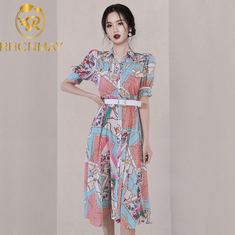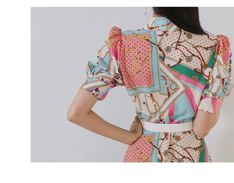 ヴィンテージプリントドレス女性夏スリムワークパーティードレスシンプルなシングルブレストシャツVestidos サマー 夏物 ビンテージ