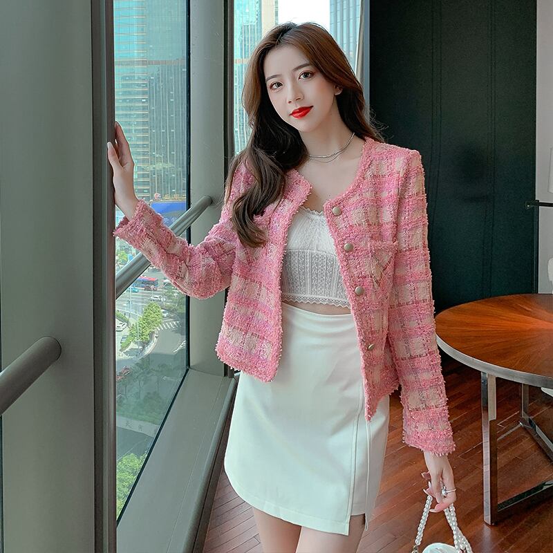 秋冬ツイードコートレディースヴィンテージ長袖ショートウールジャケットコートスタイルインストリートウェアチェック柄アウトウェアトップ ロング オータム 秋物 ウィンター 冬物 ビンテージ