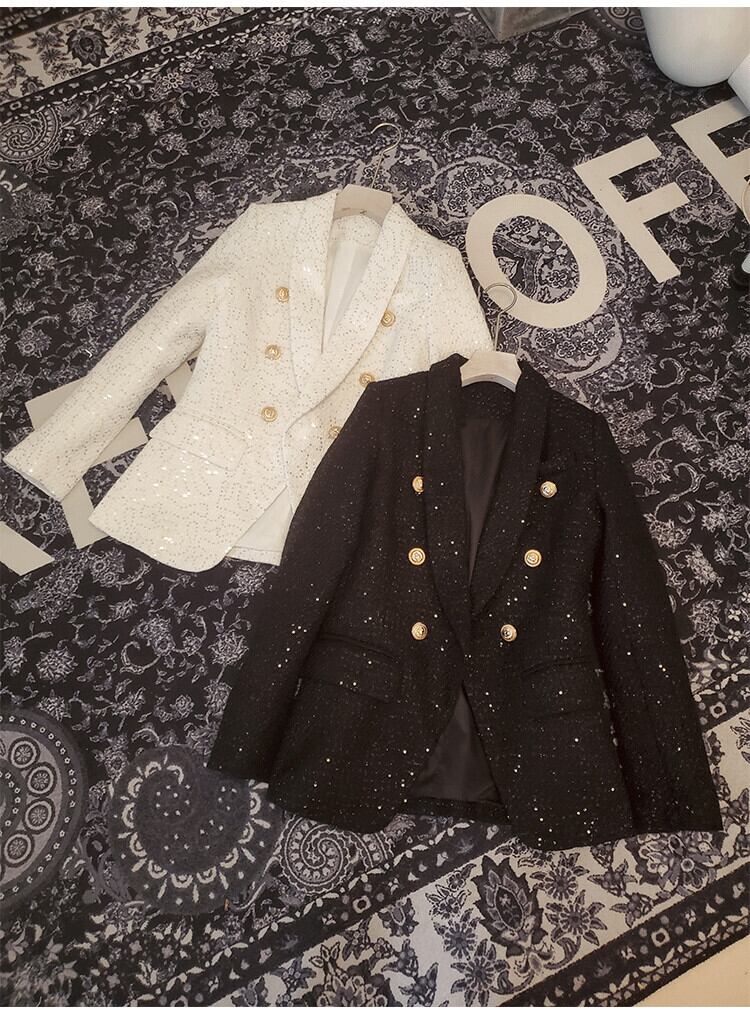 高品質 ダブルブレスト織り ツイード 女性ブレザー ジャケット 春秋 コート スプリング 春物 オータム 秋物