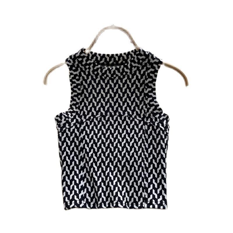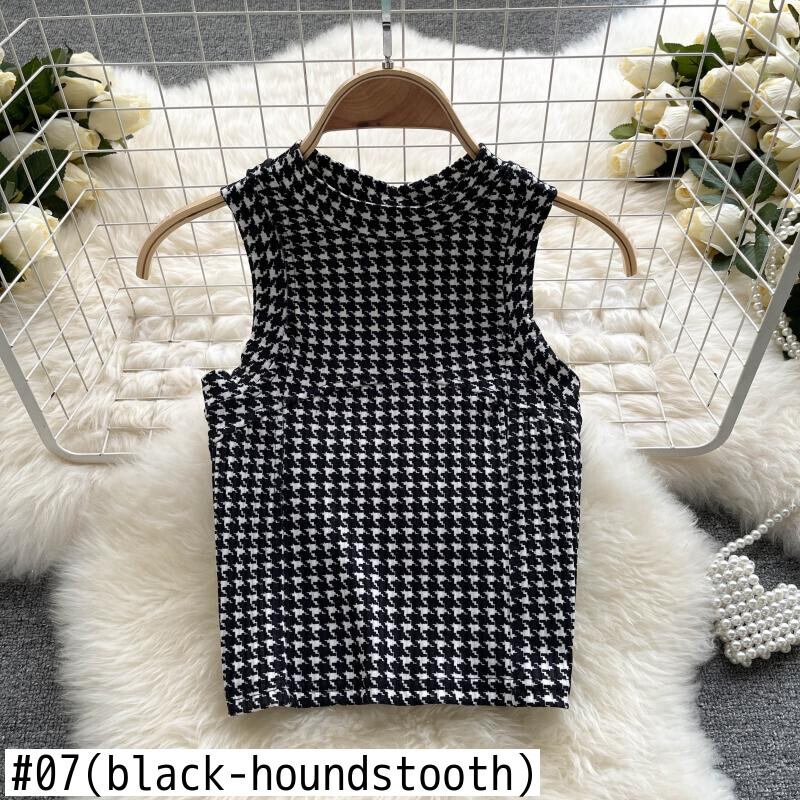 レトロな千鳥格子のタンクトップ女性ノースリーブスリムベスト2021秋のストリートウェアプリントクロップトップス オータム 秋物