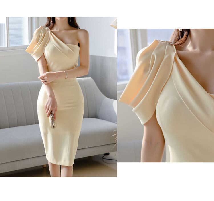 2021年サマーシーズンドレスレディースバージョンセレブ気質肩漏れセクシースリム無地ドレス 夏物 ソリッドカラー