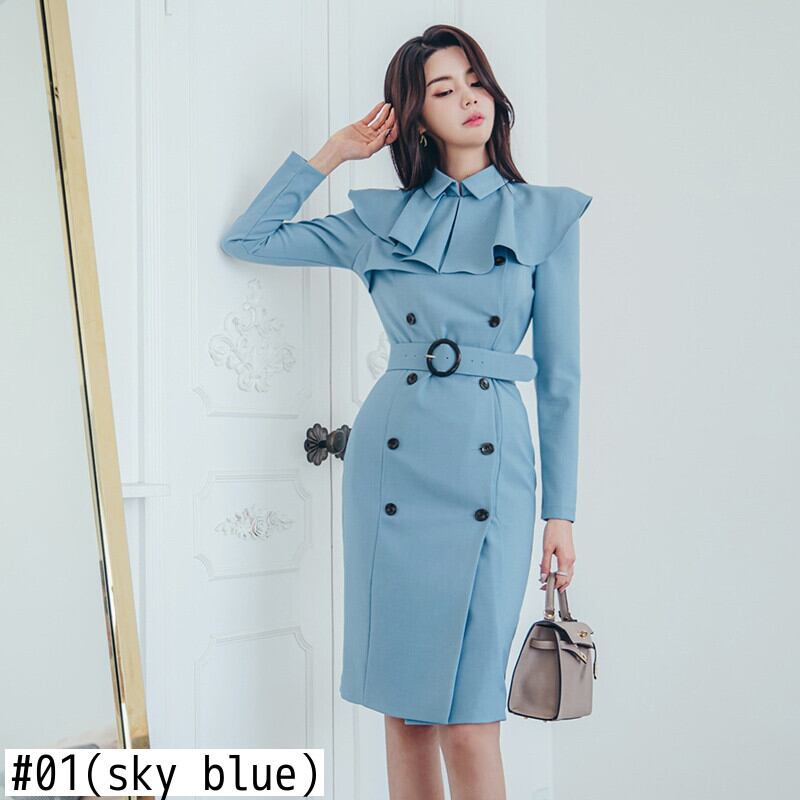 スリムウエスト ダブルブレスト 膝丈 ドレス パッケージヒップ ドレス キャバ ワンピース