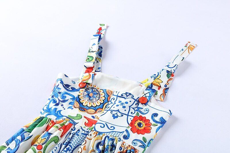 プリント ノースリーブ サマードレス レディース スパゲッティストラップ レトロスリム ビーチロングドレス 夏物 ビンテージ