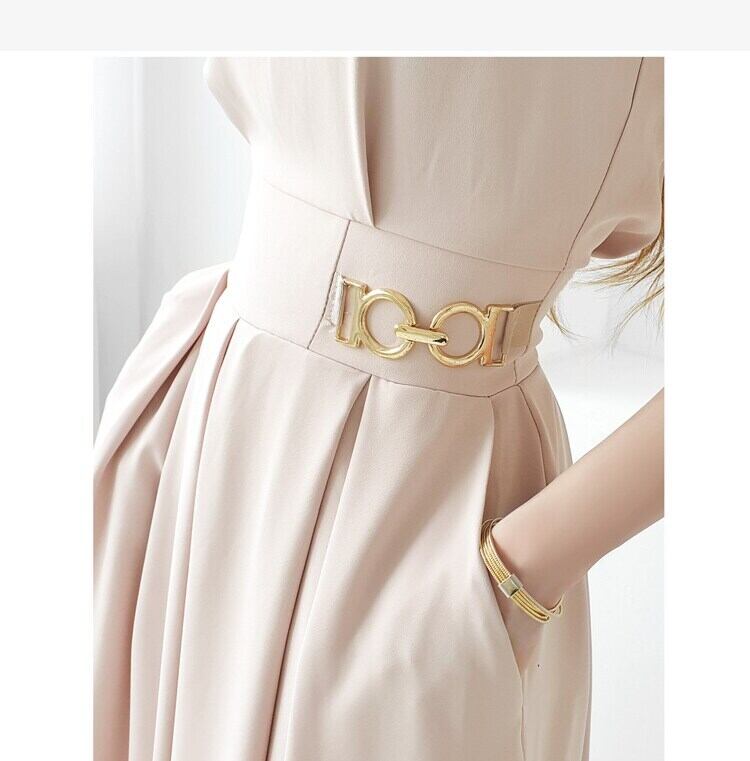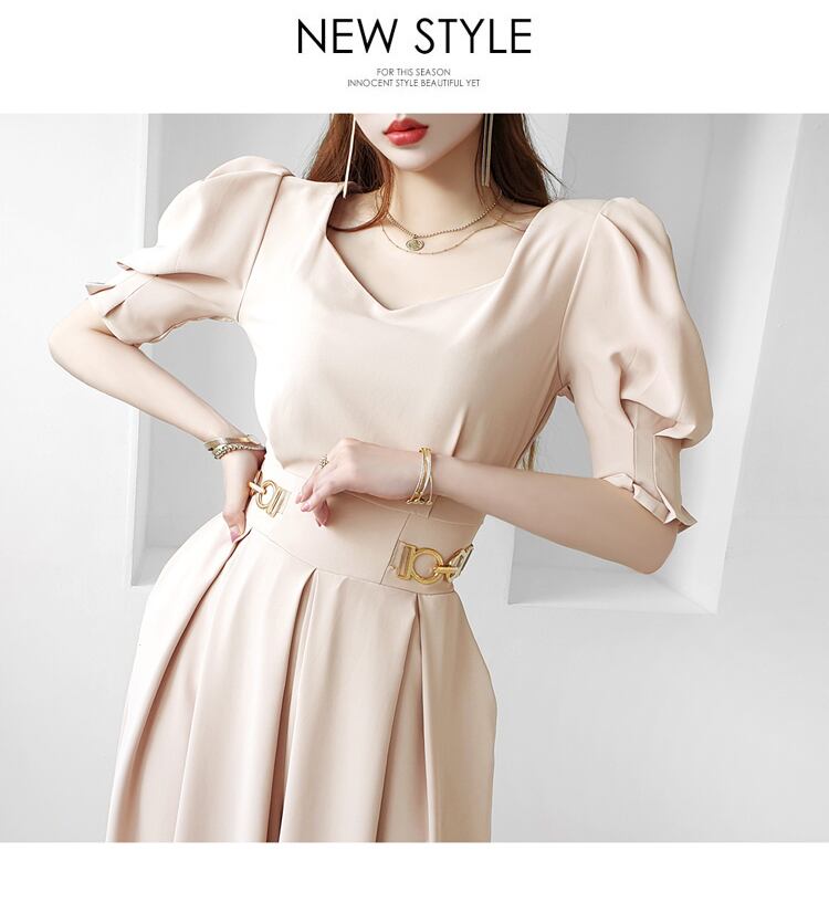 ロングジャンプスーツレディーススクエアカラーメタルバックルウエストワイドレッグパンツOLオフィスレディマキシワンピース衣装 ワイドパンツ スクウェア 会社 学校 通勤や通学にも