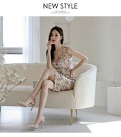 夏のボディコン膝ドレス女性OLビーチセクシータンクボウプリントスプリットドレス休暇服 リボン サマー 夏物