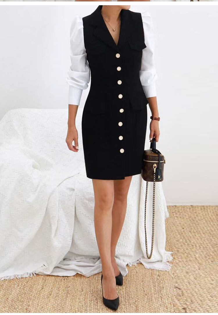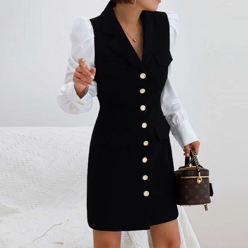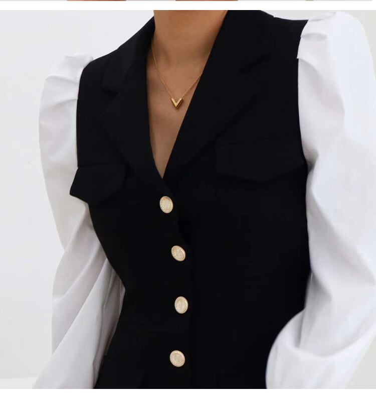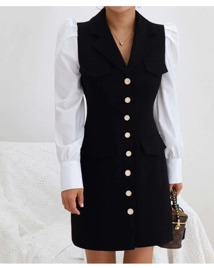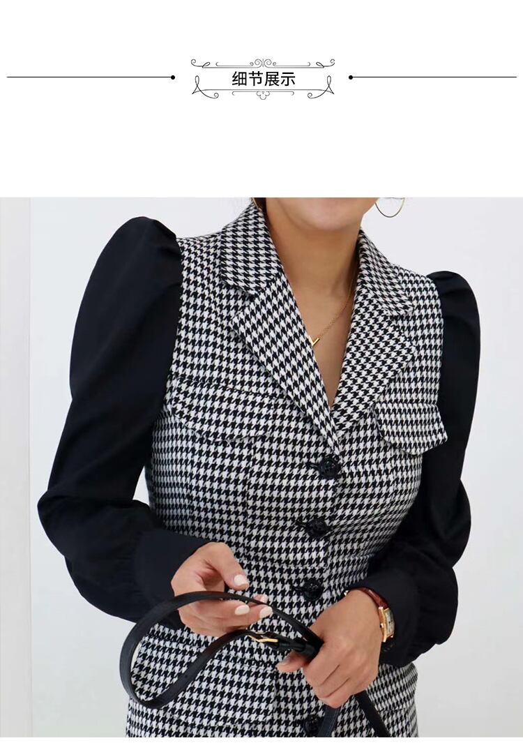 秋のヴィンテージパッチワークシングルブレストスーツオーバーコートシンプルなスリムドレス千鳥格子シックなドレス オータム 秋物 ビンテージ