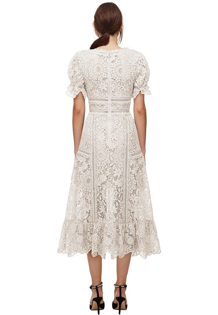 夏の白いドレス女性パフスリーブ中空アウトウエストヴィンテージパーティーミディドレスVestidos ホワイト サマー 夏物 ビンテージ
