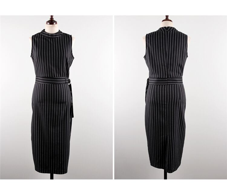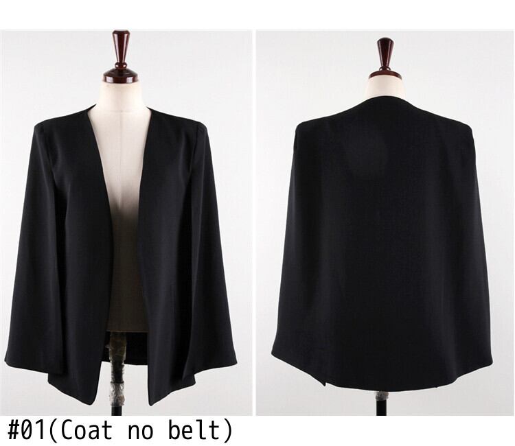 女性春2ピースノースリーブストライプドレススーツビジネスブラックマントコートスーツショールツーピースセット無料ベルト スプリング 春物 ハーネス