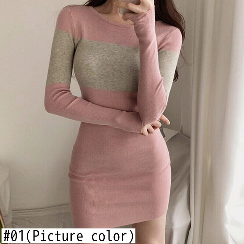 Oネック ニット ドレス 秋 タイトフィッティング スリムセーター ドレス 冬ニットプルオーバードレス オータム 秋物 ウィンター 冬物