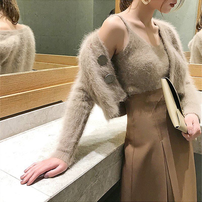 秋冬セーター2点セットレディースミンクカシミア長袖半袖カーディガン+ベストソフトニットトップススーツ ショート ロング オータム 秋物 ウィンター 冬物
