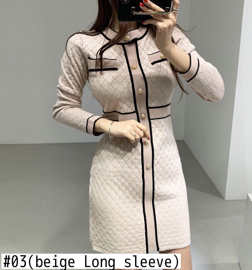 ランウェイ春スモールフレグランスニットドレスレディーススプライスシングルブレスト長袖セータードレスラウンドカラー ロング スプリング 春物