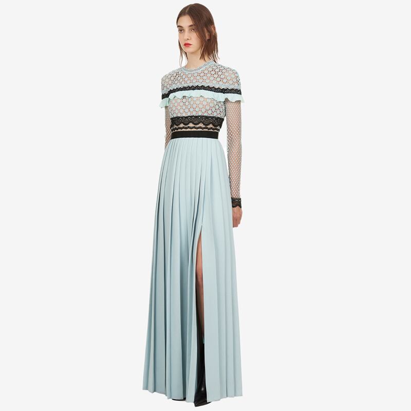 春 プリーツ スプリット ロングドレス 長袖 マキシドレス ドレス スプリング 春物