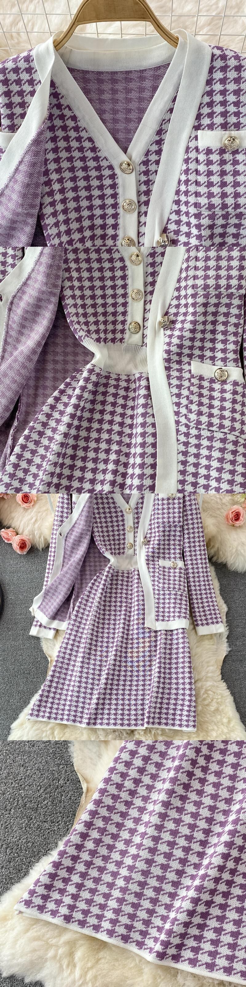 2021年秋冬ニット2点セットレディースシングルブレストカーディガンジャケットウォームセータージャケット+ニットベストドレス オータム 秋物 ウィンター 冬物