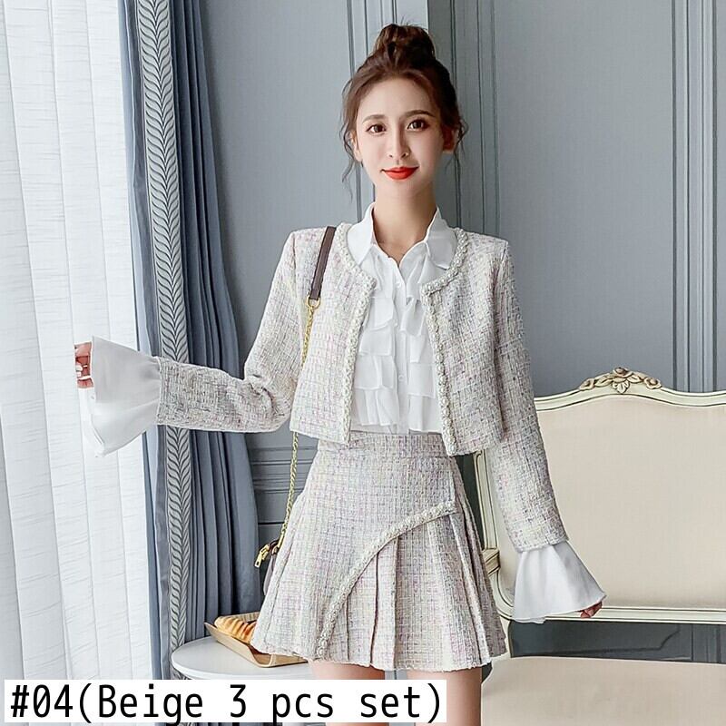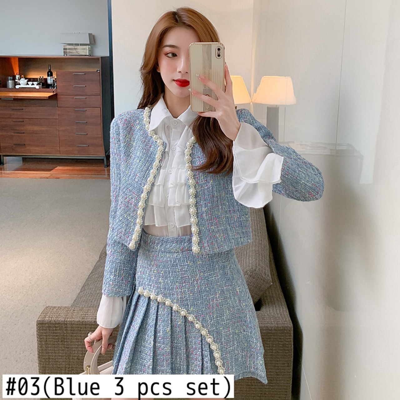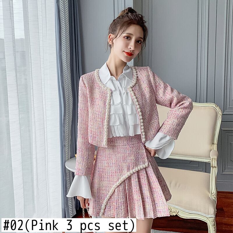 2021年冬秋婦人服Socialite長袖ツイードコートシャツショートスカートスリーピーススーツ ロング オータム 秋物 ウィンター 冬物