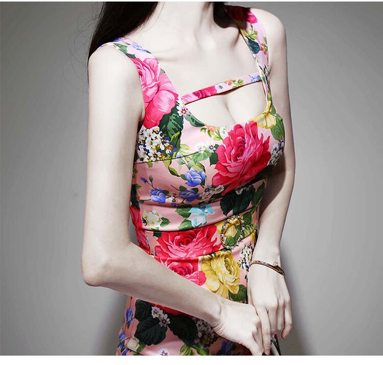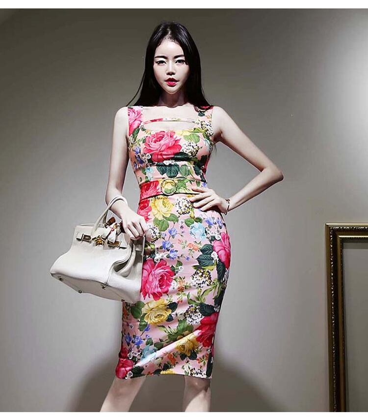 夏の女性スパゲッティストラッププリントフローラルペンシルドレススリムセクシースクエアカラーボディコンオフィスレディドレスシースサッシ サマー 夏物 花柄 スクウェア 会社 学校 通勤や通学にも