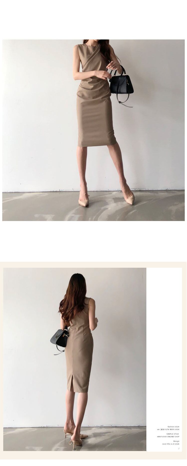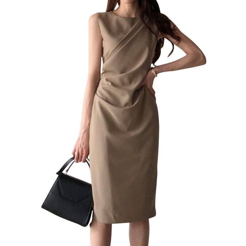 ドレス ノースリーブ タンク ウエスト スリム ドレス ヴェスティドス サマー 夏物 会社 学校 通勤や通学にも