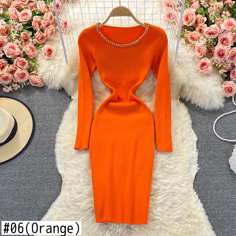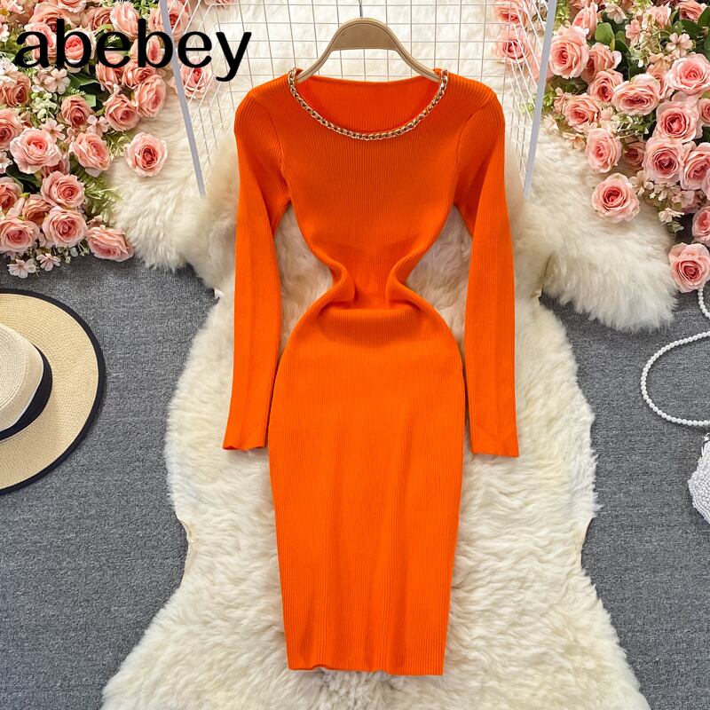女性ニットドレス長袖Oネック伸縮性スリムペンシルドレス秋のセクシーなボディコンストリートウェアセータードレス ロング エラスティック オータム 秋物