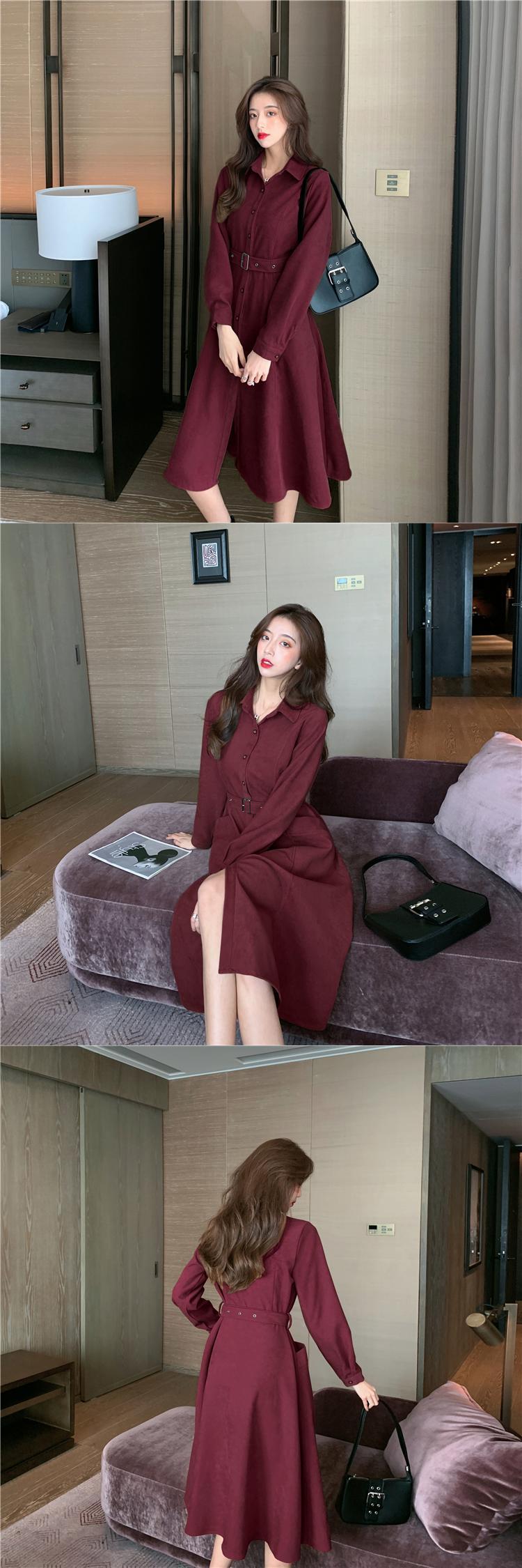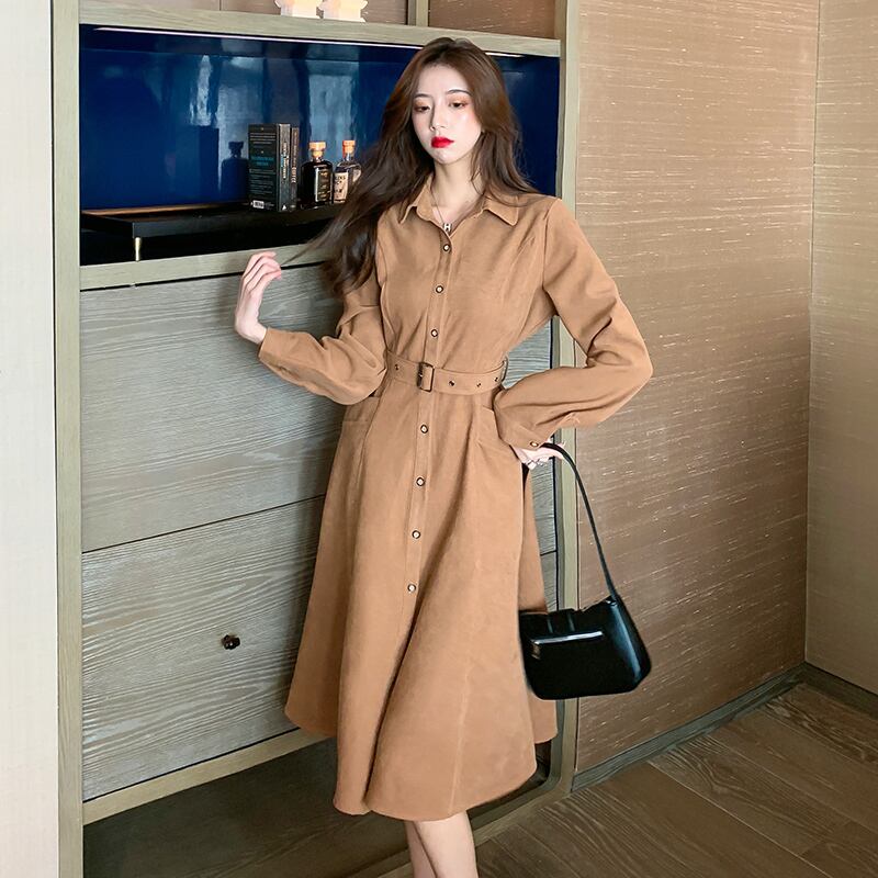 シャツドレス 春秋 レトロなシングルブレスト ドレス シャツワンピース スプリング 春物 オータム 秋物