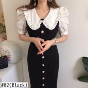 夏の女性のフリルドレスピーターパンの襟ヴィンテージパーティースリムフレッシュかわいいドレス ラッフル 大人ガーリー スウィート キュート カジュアル サマー 夏物 ビンテージ