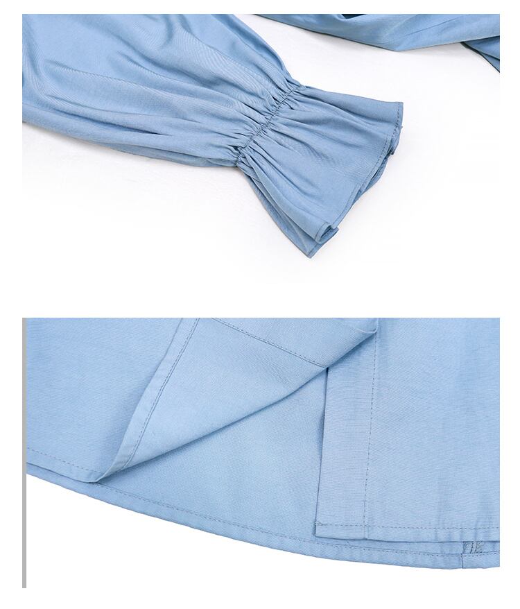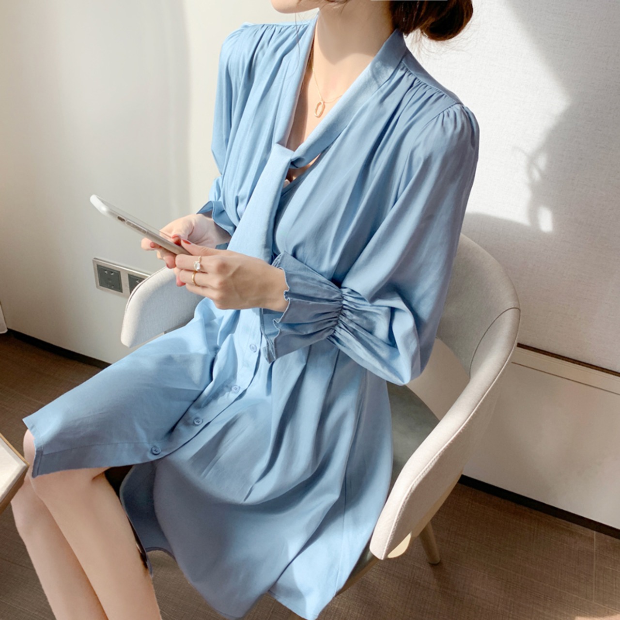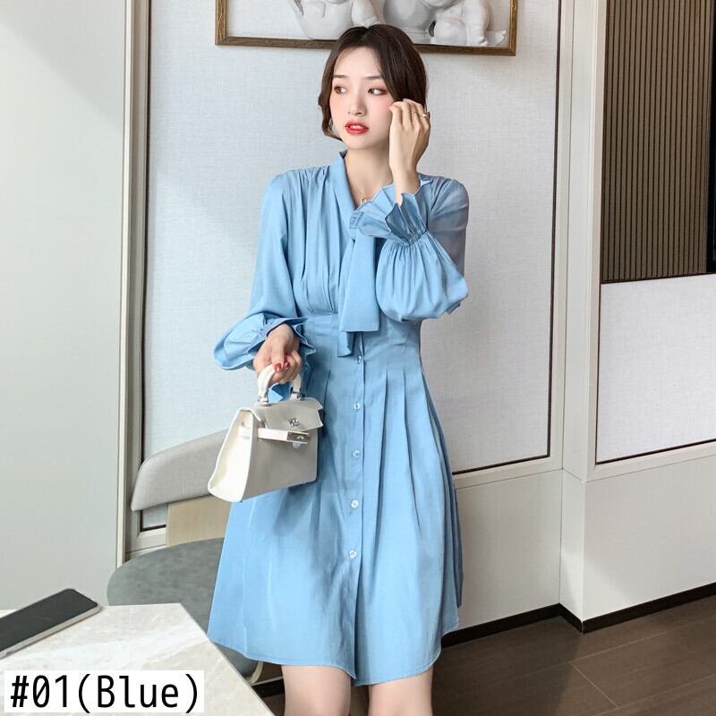 無地プリーツシャツドレスレディースフレアスリーブオフィスドレス春秋スリムチュニックドレス2021 スプリング 春物 オータム 秋物 ソリッドカラー 会社 学校 通勤や通学にも