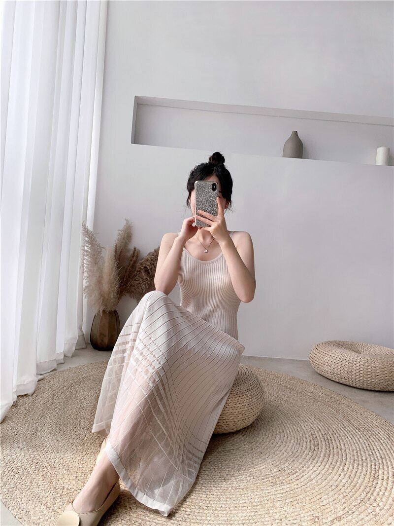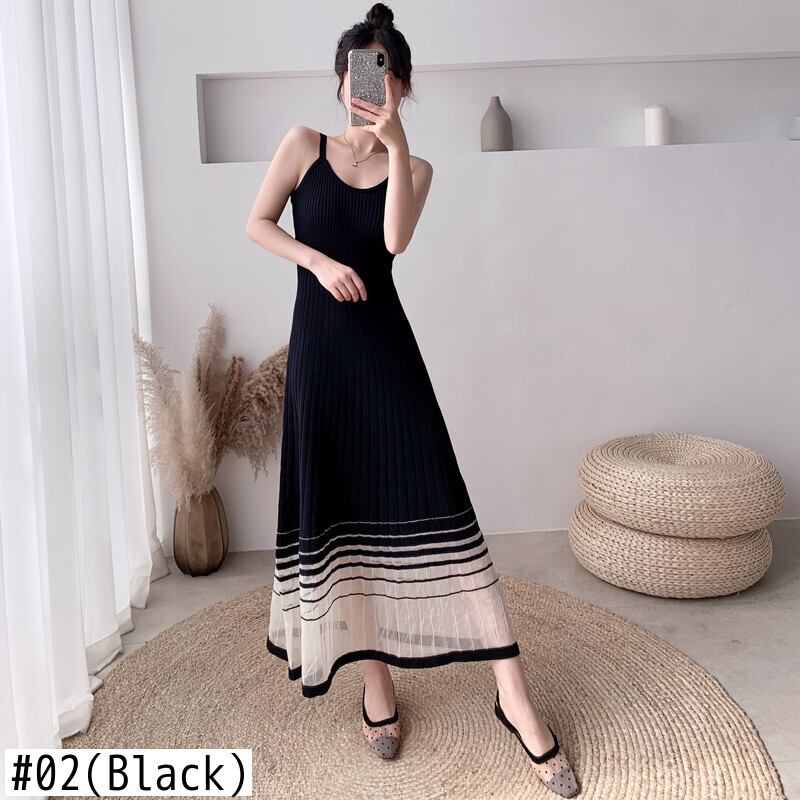 キャミソール ストラップ ノースリーブ ニット ドレス サマー アイス シルク ニット パーティードレス スリングドレス 夏物