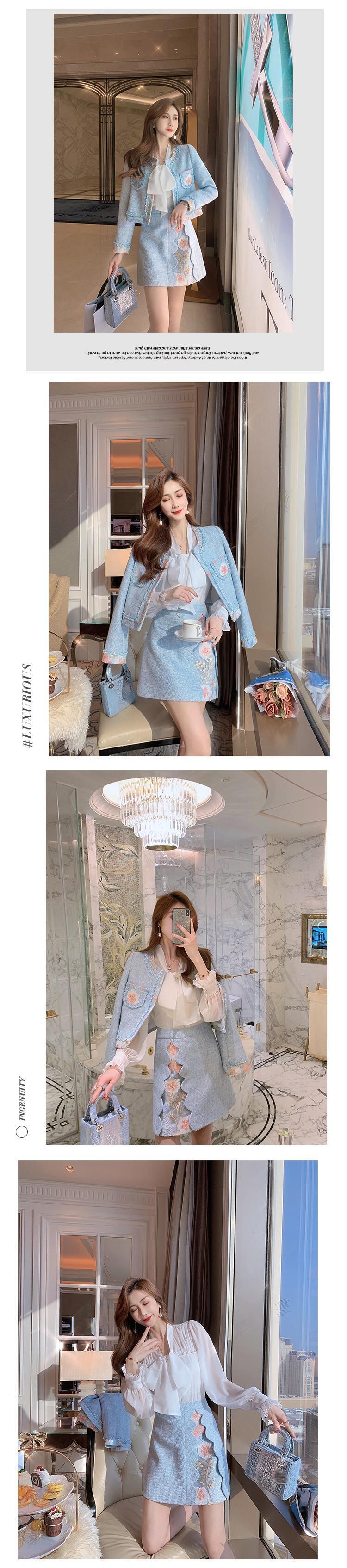 2021年秋冬女性セット刺繡ヴィンテージジャックツイードコートとミニスカートツーピースセット 刺繍 オータム 秋物 ウィンター 冬物 ビンテージ