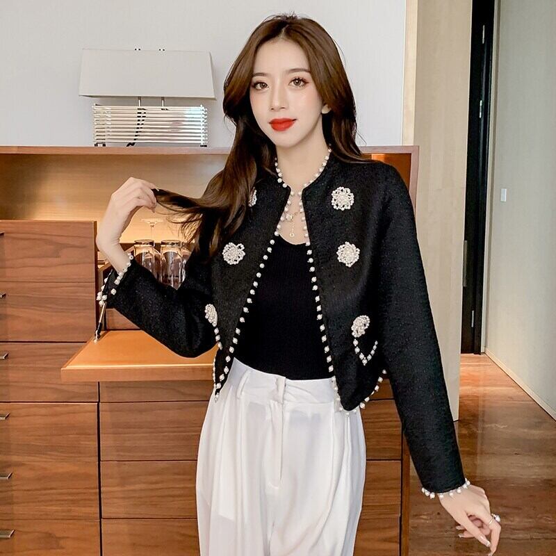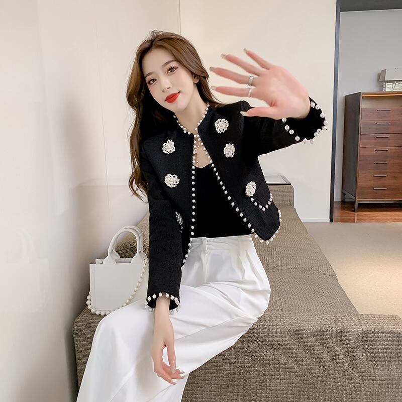 スモールフレグランスツイードコートレディースOネック長袖秋冬ジャケットボタンアウトウェア2021 ロング オータム 秋物 ウィンター 冬物