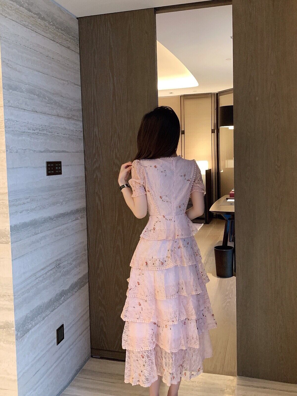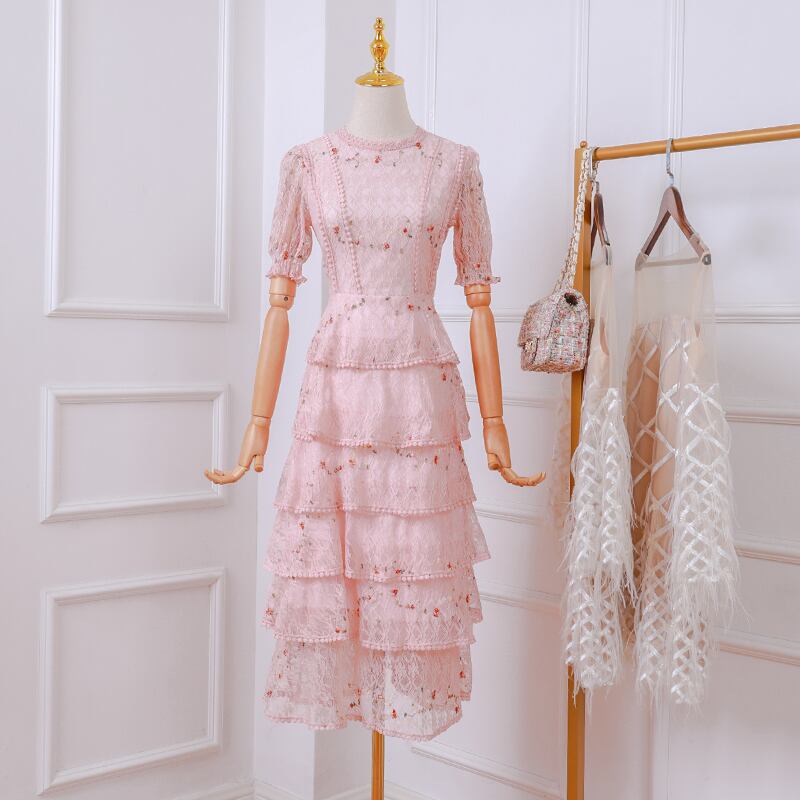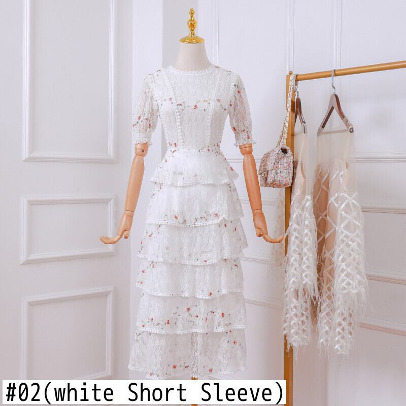 ヴィンテージレイヤーフリルレースマキシドレス滑走路夏の女性白い花の刺繡ロングドレス中空アウトケーキパーティードレス ホワイト ラッフル 刺繍 サマー 夏物 花柄 ビンテージ