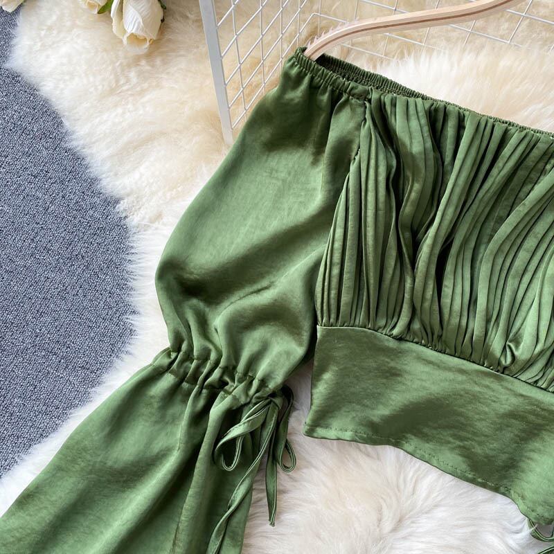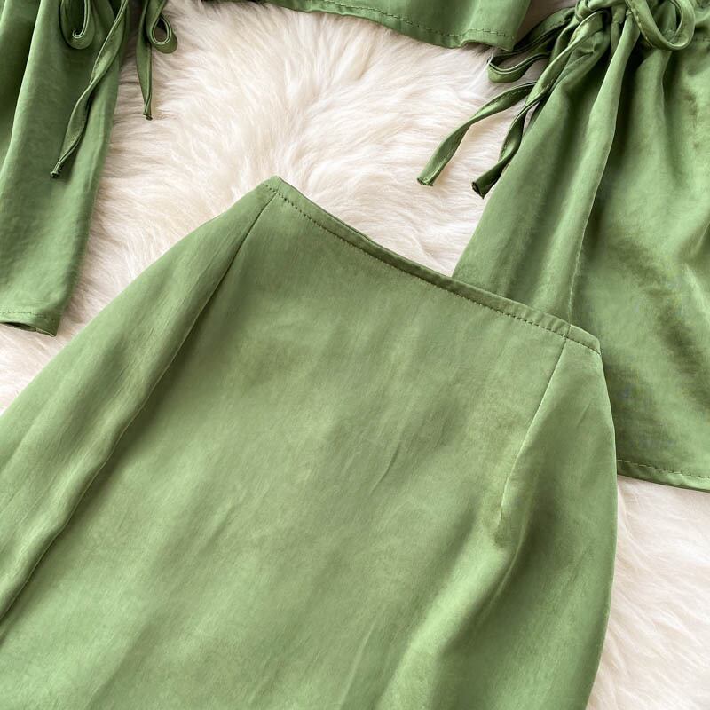 女性秋セットセクシースラッシュネックオフショルダーショートトップス+ウエストスプリットスリムスカートツーピーススーツ オータム 秋物