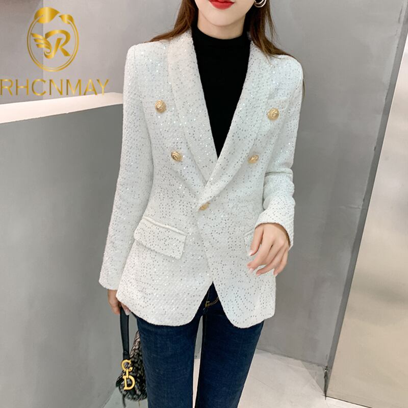 ランウェイ コートウィメンズダブルブレストメタルボタン長袖ノッチカラージャケットウールブレンドツイードコート ロング