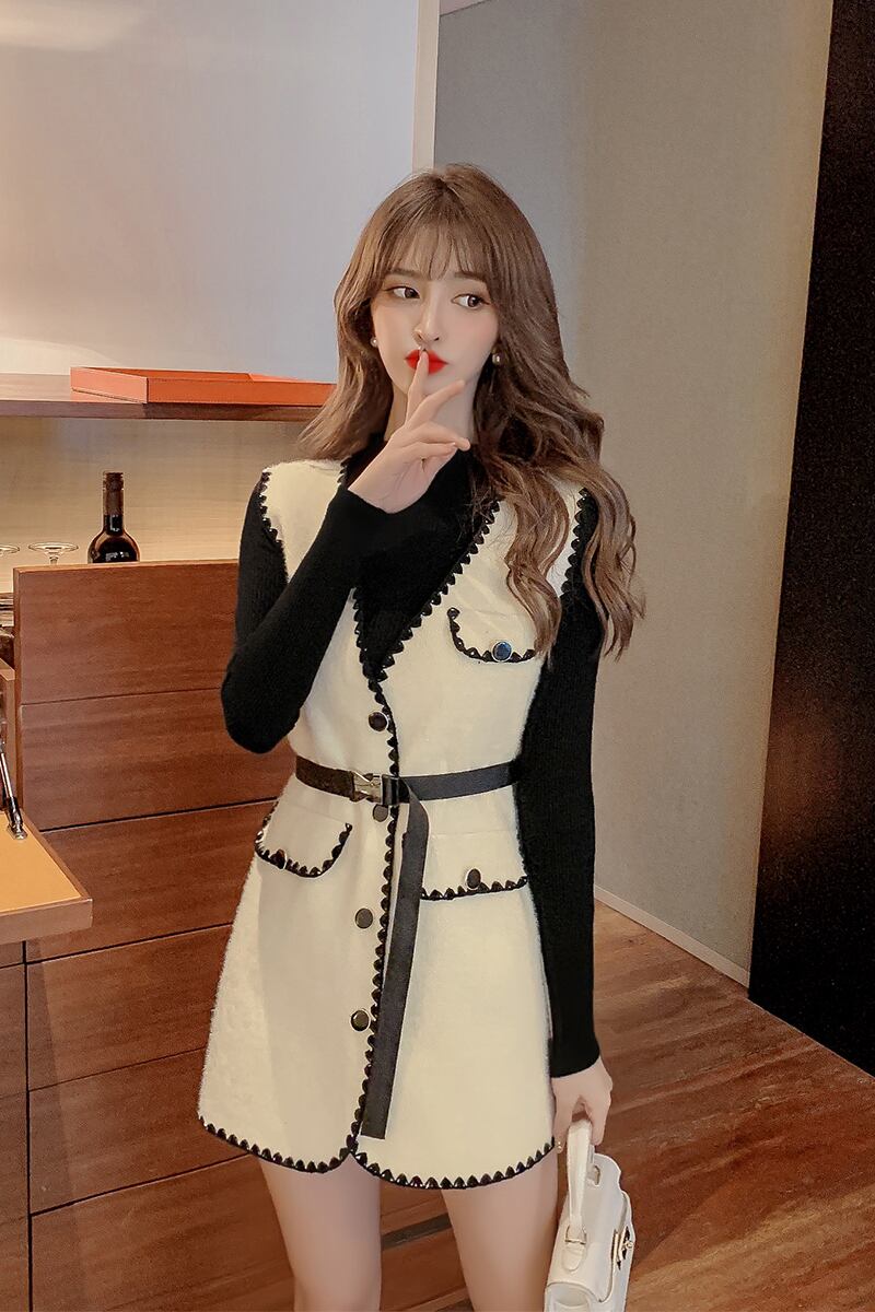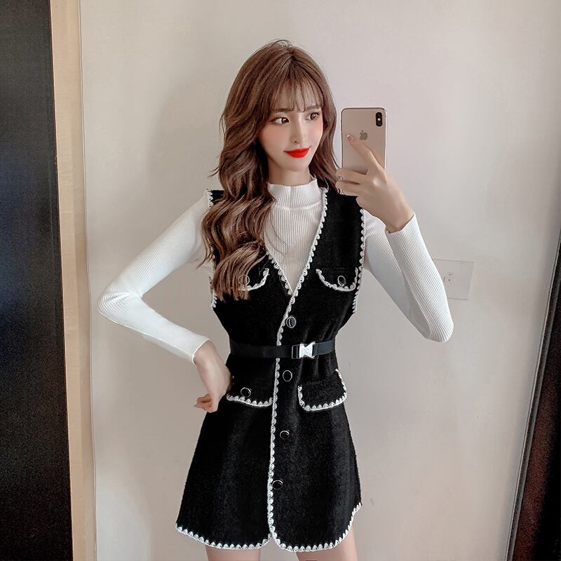 秋冬女性ツーピースセット長袖セーター+セレブ気質ベストスカート ロング オータム 秋物 ウィンター 冬物