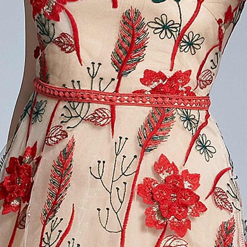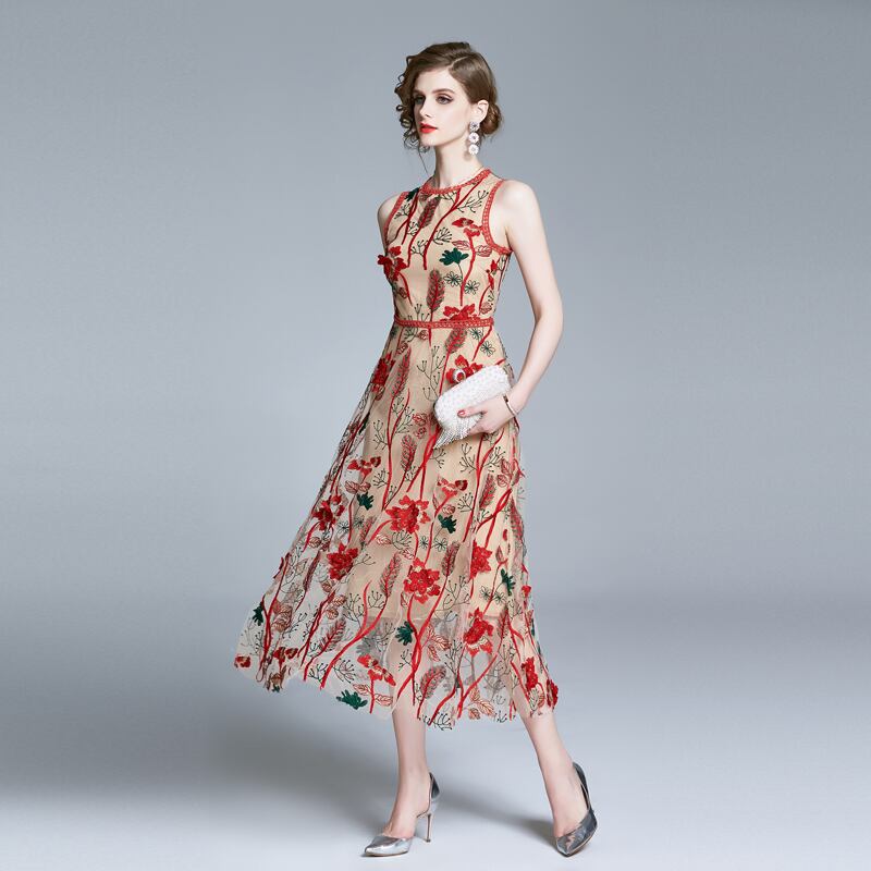 ヴィンテージ女性ノースリーブドレスOネックフラワー刺繡ドレス夏のセクシーなタンクシーサイドホリデーロングドレス 刺繍 サマー 夏物 フラワーデザイン ビンテージ
