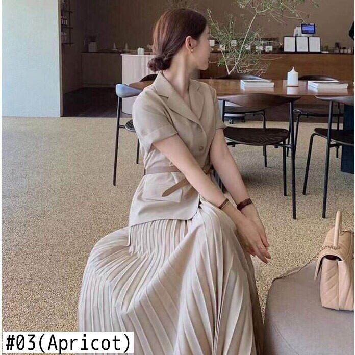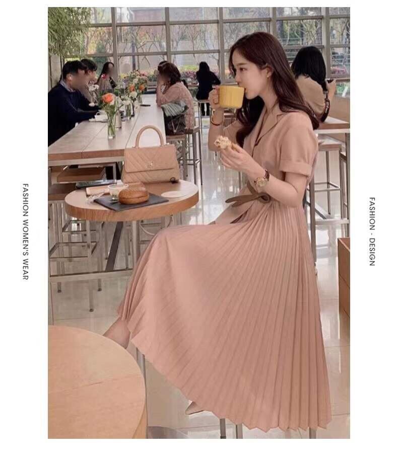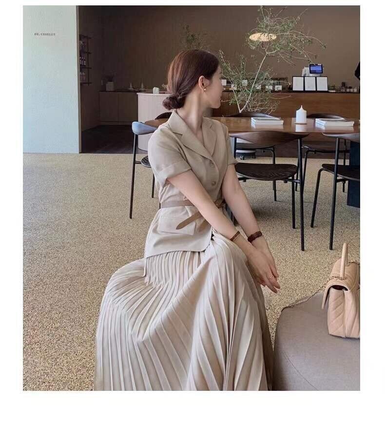 夏の贅沢な女性のノッチ付きネックプリーツドレスシックなシングルブレストビジネスAラインドレスベルト付き サマー 夏物 ハーネス