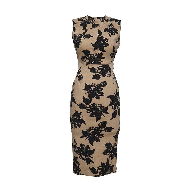 夏の女性のスタイルのスリムなパーティードレスOネックノースリーブ背中の開いたセクシーな印刷シース膝丈スプリットドレス サマー 夏物
