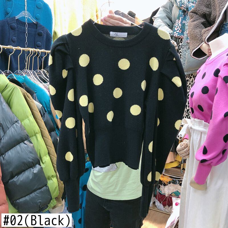 シックなセーターの女性スタイリッシュな2021年秋冬パフスリーブプルオーバーセータードット女性のニットウェアジャンパートップスレディ オータム 秋物 ウィンター 冬物