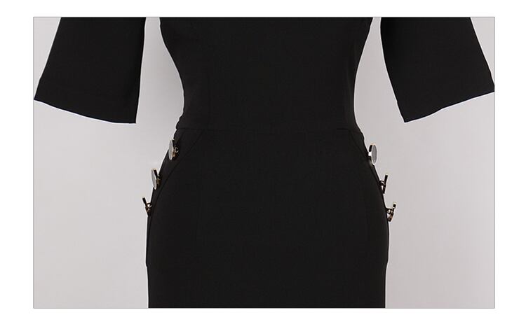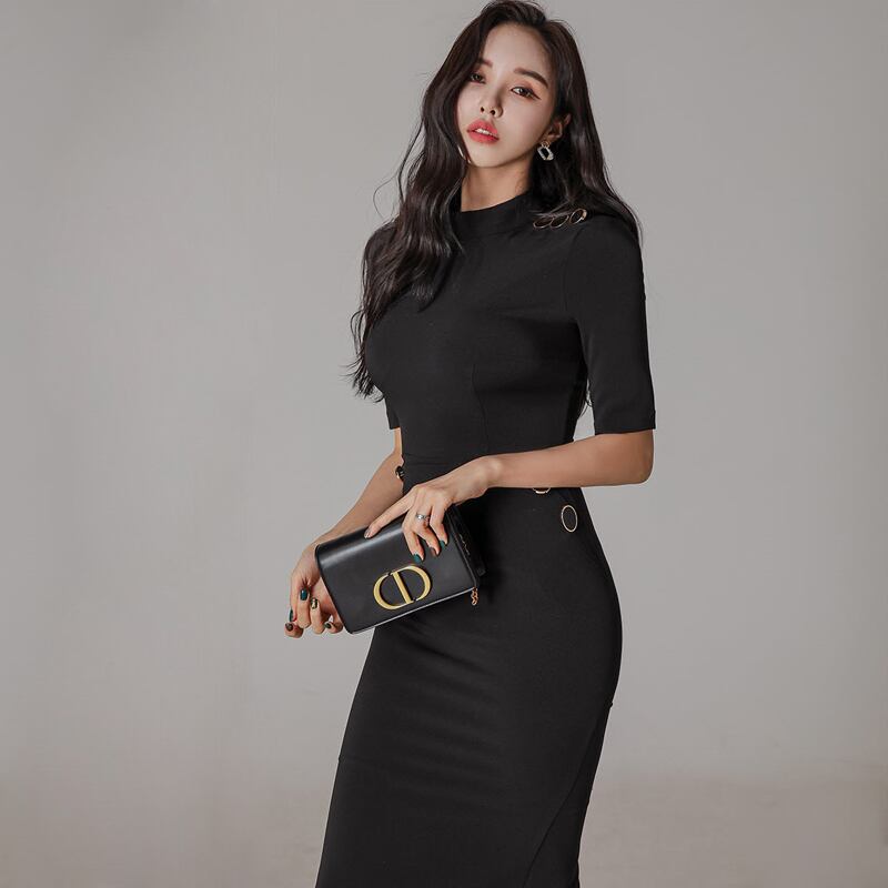 2021年春の黒半袖クルーネックドレス女性シンプルなお尻ドレスOLmal Business Vestidos ブラック ハーフスリーブ スプリング 春物
