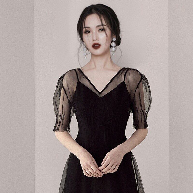 夏のVネックメッシュパーティードレスレディースドレスパフスリーブドレススリムミディドレス サマー 夏物