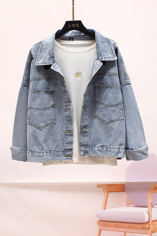 春デニムジャケット女性刺繡レターシングルブレスト 秋ブルーコート 刺繍 スプリング 春物 オータム 秋物