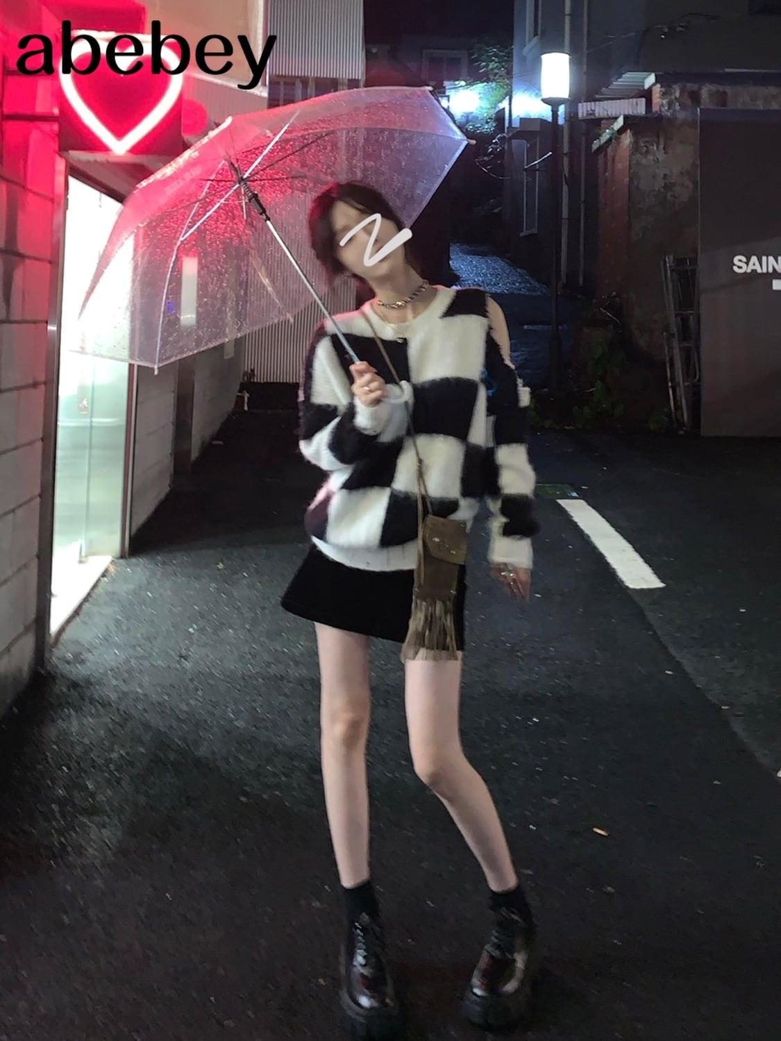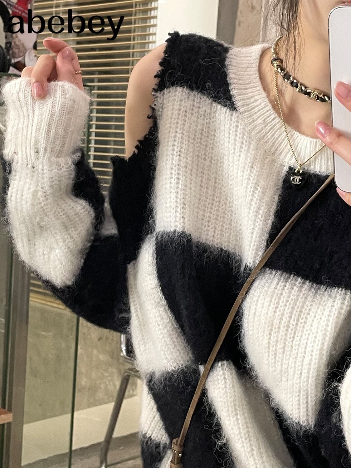 2021年春秋新作ファッションセクシーOネックルーズトップ女性原宿特大セーター女性秋セーター女性 かわいい スプリング 春物 オータム 秋物