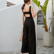 セクシーな背中の開いたジャンプスーツ女性ノースリーブスパゲッティストラップポケットブラックプレイスーツロングパンツプラスサイズOLロパ 大きめサイズ
