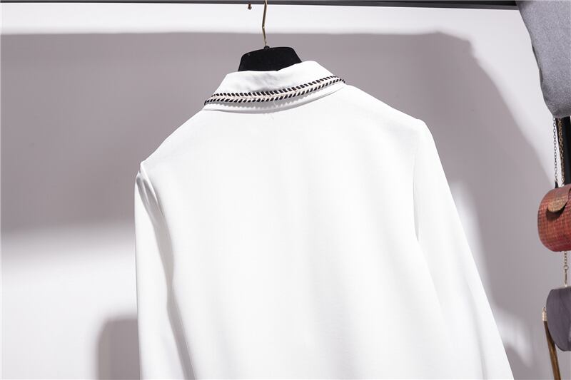 女性 2ピースセット 春の白いシフォンボウノット シャツトップス+黒のチェック柄 ツイードマーメイドスカートセット ホワイト ブラック リボン スプリング 春物