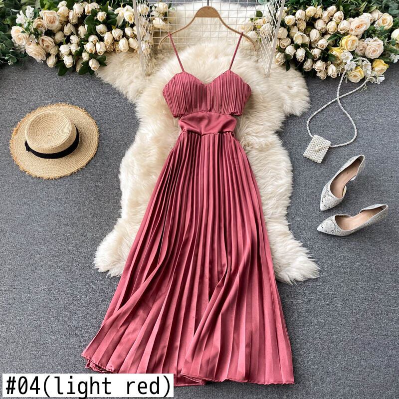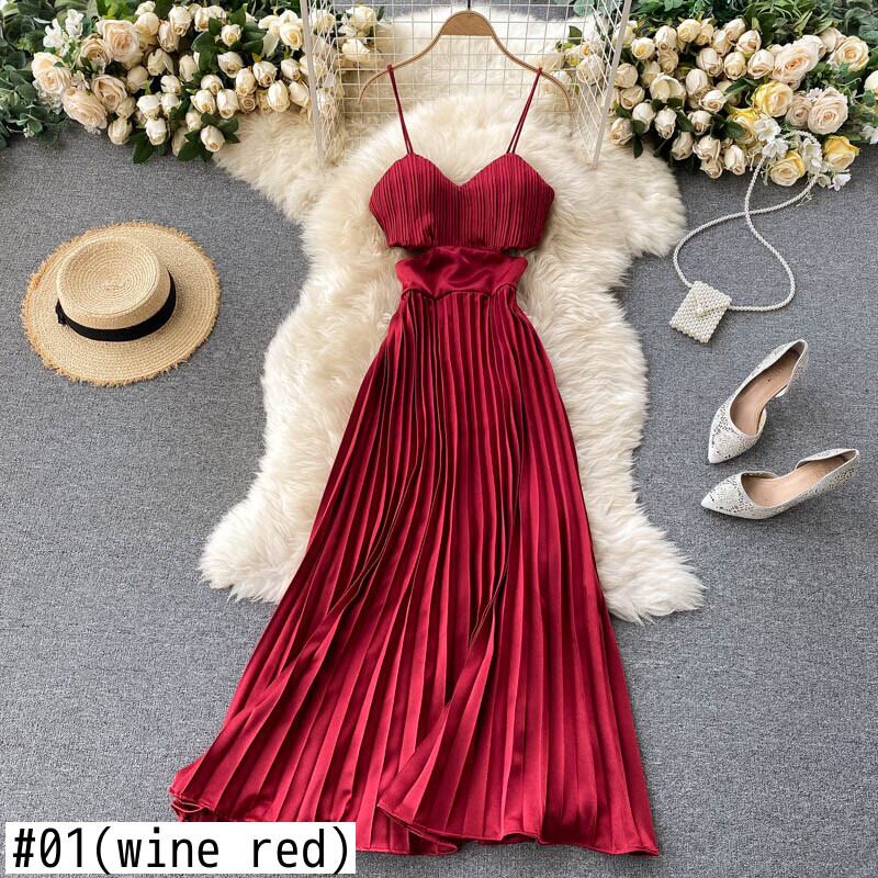 女性セクシーストラッププリーツマキシドレスサマーノースリーブバックレスAラインパーティードレスホローアウトウエストロングドレス 夏物