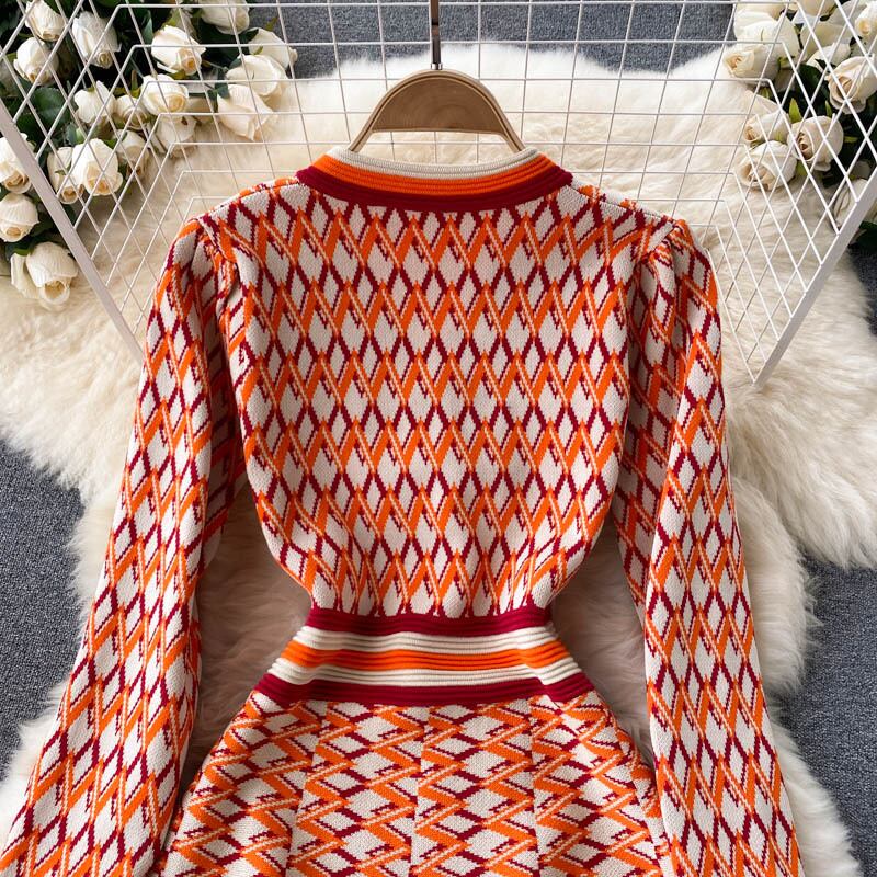 2021年秋の女性のニットドレスレトロな長袖Aラインドレスストリートウェアショートセータードレス ロング オータム 秋物